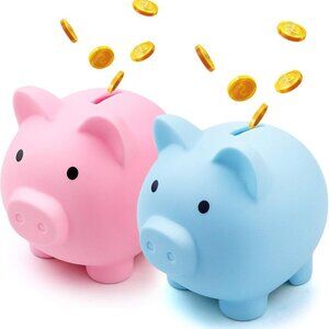 Cute design: Cute piggy money bank features 2 colors,blue and pink,which make them look cute and attractive,allow you willing to place money in this adorable coin bank,develop good habits of saving money.And it is reusable that you can also withdraw coins from the bottom of the bank