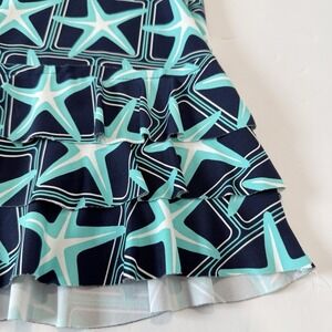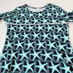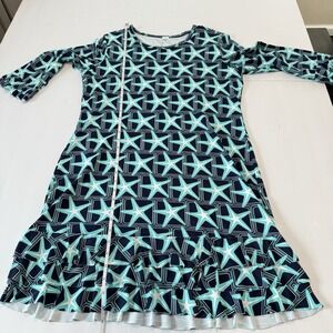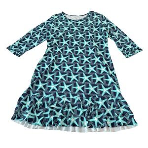 Lulu B Blue Starfish 3/4 Sleeve Flounce Ruffle Hem Shift Dress Size MEDIUM