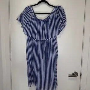 Chic blue and white vertical stripe beach cover-up, never worn.