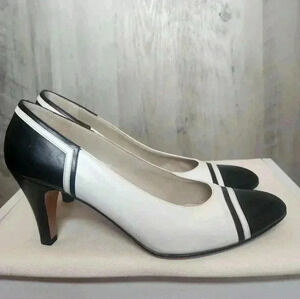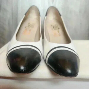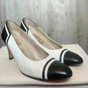Ferragamo Salvatore 60s Black White Vintage Kitten Heels Size 7AAAA Women's