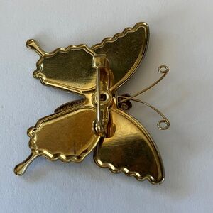 Vintage Gold Tone Multicolor Butterfly Brooch