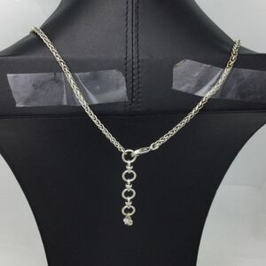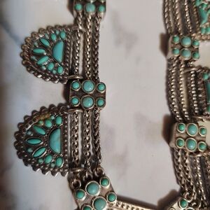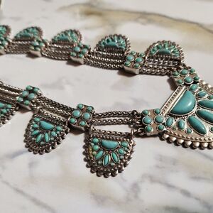 Chic necklace with aqua stones. Silver accents add elegance. Ideal for any outfit.