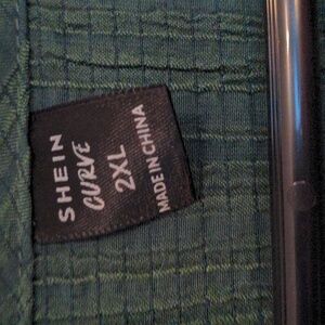 This comfortable and stylish SHEIN Curve top in a rich dark green (forest/emerald) color is perfect for casual wear. The tunic features a unique crinkle texture throughout, giving it a relaxed, linen-like feel without the fuss.