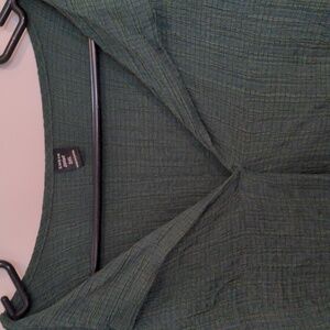 SHEIN Curve 2XL Dark Green Crinkle Texture V-Neck Tunic Top