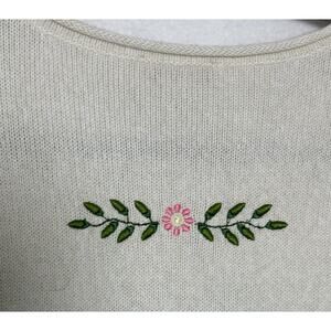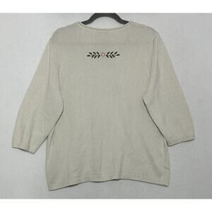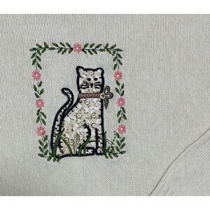 Christopher & Banks Sweate XL Hand Embroidered Cat Kitty Flowers Cottage Grandma