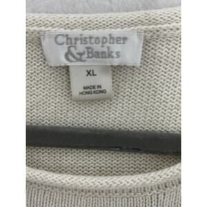 The Christopher & Banks XL hand embroidered cat sweater is a cozy and charming addition to any wardrobe. Made from ramie fabric with a knit texture, this beige sweater features a crew neck and long sleeves, perfect for all seasons. The sweater displays a cute animal print pattern of cats and flowers, giving off a cottage and grandma vibe. It is ideal for various occasions such as travel, casual outings, workwear, or business meetings, offering a regular fit for a comfortable and stylish look.