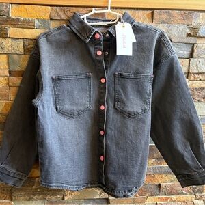 Kids Billiblush Denim Button-Up Shirt/Light Jacket Pink Buttons Bedazzle on Back