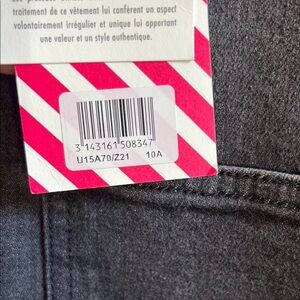 Stylish gray denim shirt featuring pink buttons. Perfect for casual wear.