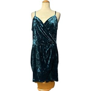 New Look Crushed Velvet Faux Wrap Dress Green Size 14