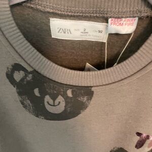 Crew neck sweatshirt with long sleeves. Ribbed trim. Glittery text print on the chest. Soft, warm, brushed fleece interior.