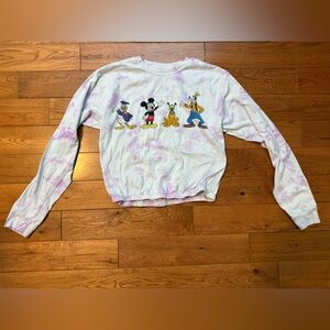 Disney womens/juniors long sleeve cropped tee. Pink and white tie dye. Print on both back and front. Size small.
