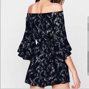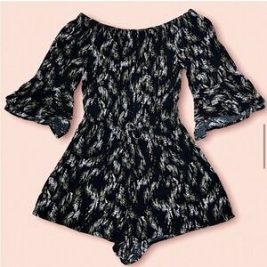 EXPRESS Off The Shoulder Black Green Leaf Tropical Romper. Small.