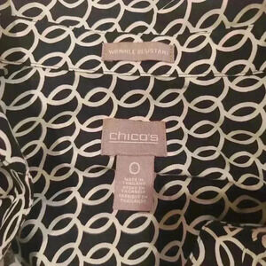 CHICOS Playful Loop Blouse Wrinkle Free Long Sleeve Button Closure V-neck XS