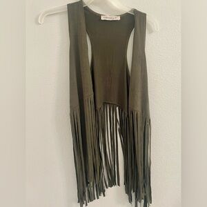 Festival Fourteen and 9th Fringe Sleeveless Vest Olive Faux Suede Size Large