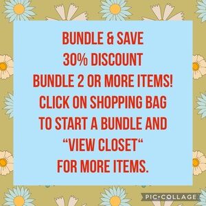 💛Like more than one item in my closet and automatically save. The current bundle offer is listed under shipping/discounts. Click the shopping bag icon with a plus sign next to the like button to start your bundle and get the discount. To see my entire closet, click “View Closet” or double-click on @practical_girl. To qualify for this offer, the total weight of the items must be less than 5 lbs.