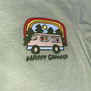 Light green 2T t-shirt by Cat & Jack, it has a van with a rainbow on the front and says "happy camper" 60/40 cotton/polyester blend. I have a matching listing in 4T.