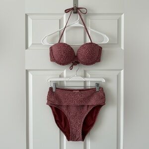 Burgundy bikini with a flattering contour-style top – perfect for beach days or lounging poolside.