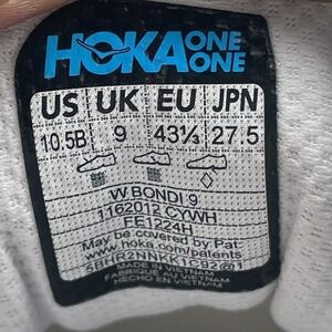 Hoka One One Sneakers Womens 10.5 B Bondi 9 1162012 CYWH White Running Shoes
