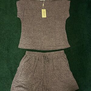 Experience comfort with this textured pajama set. Short-sleeve top and matching shorts. Perfect for relaxing at home.