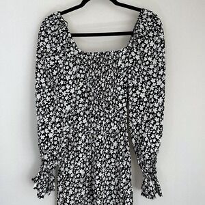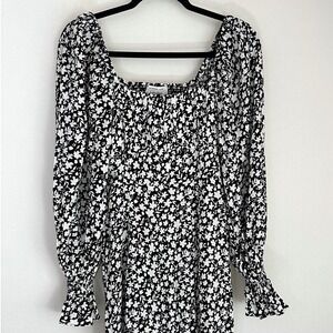 Keywords: & Other Stories dress, floral midi dress, black and white floral dress, square neck dress, long sleeve midi dress, shirred bodice dress, smocked cuff dress, EcoJilin Viscose dress, women's midi dress, casual dress, garden party dress, brunch outfit, boho, bohemian, country, western, cottagecore, edgy, grunge, emo, goth, side zip, high slit, midaxi