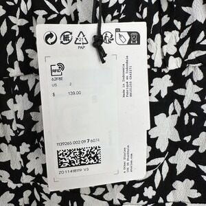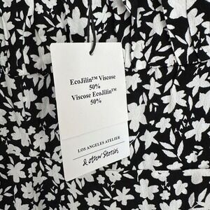 NWT & Other Stories Floral Square Neck Midi Dress Black White Double Puff Slit 2