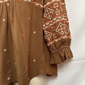 Savanna Jane Embroidered babydoll top in brown Size Small EUC