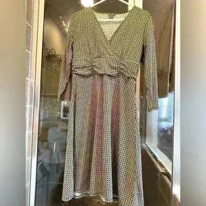Black and white faux wrap dress by Ann Taylor in size 8. Black and white pattern. Very flattering dress. Machine washable and has side zip.