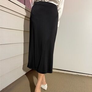 This elegant black midi skirt is perfect for any occasion. Its sleek design offers a timeless look.