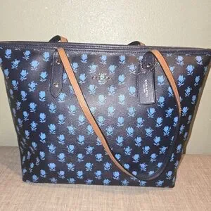 Euc Coach City Zip Top Tote in the Badlands Floral Print in midnight blue