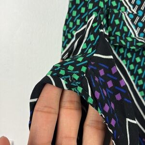 Calvin Klein Stripe Green and Purple Patchwork Boho Graphic Print Blouse