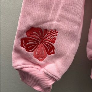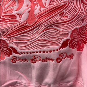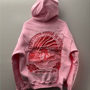 Pink Palm Puff Hoodie Everything Comes In Waves Women Pink Pull Over Hoodie
