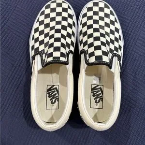 Vans slip-ons with iconic black and white checkerboard design. Easy to wear and timeless style.