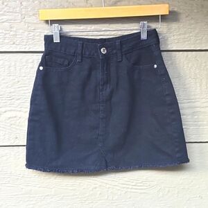 PrettyLittleThing black denim skirt fray hem 0