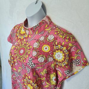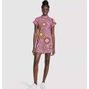 NWT Rixo Target Women's 16-18 Pink Floral Linen Blend Mod A-line Mini Dress 60s