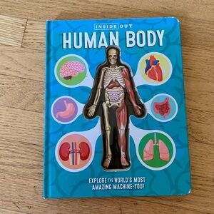 It’s hard to see from the pictures but this cool book has a 3d layered human body in the middle and every time you turn the page one of the 3d layers is peeled back to reveal what’s underneath. Educational, informative and the graphics make it really approachable for your kiddo. In good used condition.