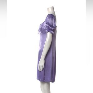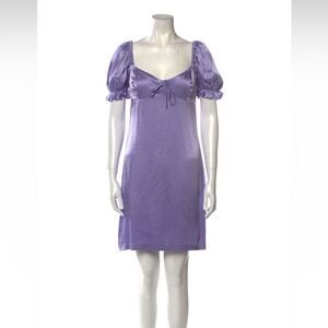 Stunning satin dress from STAUD. I love pastel purple color (perfect for spring and summer) and dainty puff sleeves. Labeled a 6 but fits more like a 4. Comment with questions