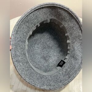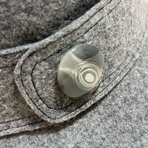Cute 100% Wool gray cloche hat. Had a gray wool ribbon and a large gray gradient button to bring it all together. Perfect for enhancing any outfit with its sophisticated style.