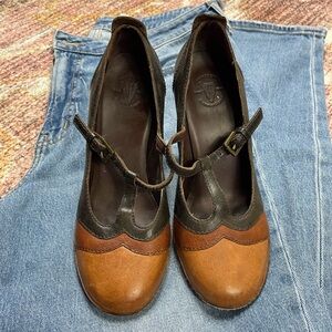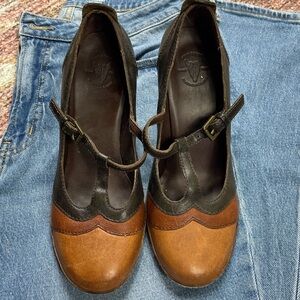 Beautiful and unique two tone Mary Jane T-strap heels from Frye. A vintage style in excellent pre-worn condition. Offers welcome!