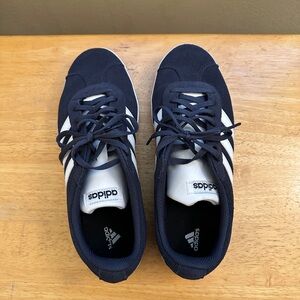 Classic Adidas sneakers with a bold navy and white look. Suede fabric. Perfect for casual outings. Only worn a few times.