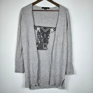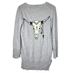 360 Skull Cashmere Cardigan Kenya Sweater Womens XS Gray Boho Cowgirl