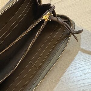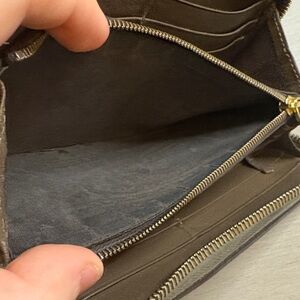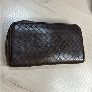 Sophisticated brown leather wallet. Includes card slots and zip pocket. Perfect for everyday use.