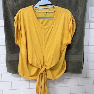 Chic mustard tee with a stylish tie-front design. Ideal for casual wear. Free People Movement. Size small.
