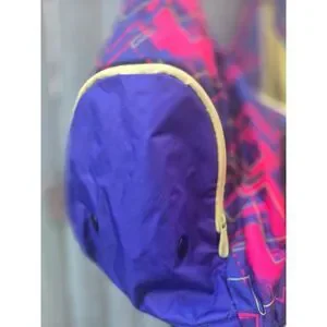 Fun and functional Puma sling / hobo bag featuring a bold purple base with pink and yellow geometric accents. Lightweight nylon construction makes it perfect for everyday wear, travel, gym, or festivals. Roomy interior: 16 x 9 x 12 inches approx.