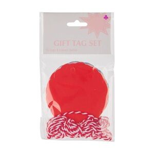 Gift tag set with red tags and red-white twine. Perfect for presents.