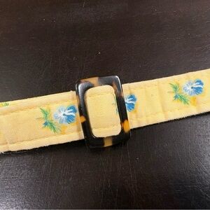 Adjustable strap with tortoise print hardware.