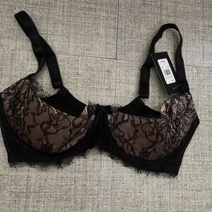 FREDERICK'S OF HOLLYWOOD Mindy Open Lace Trim Bra Size 32F NEW Black Lingerie