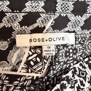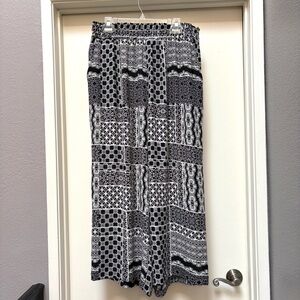 ROSE + OLIVE Black White Print Wide Leg Pants Size XL Elastic Waist Soft BOHO