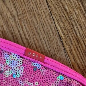 Vibrant pink bikini set with sparkling sequins. Perfect for a standout beach look. Large top medium bottom DOLL brand