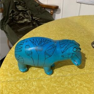 Add a touch of whimsy to your home with this charming blue ceramic hippo figurine. Perfect for art lovers and collectors.