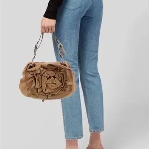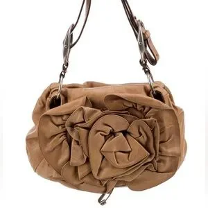 This authentic tan YSL leather shoulder bag is perfect for any occasion. Its stylish design features a unique floral accent, making it a standout accessory. Crafted for comfort and style, this designer bag is a total must-have.
